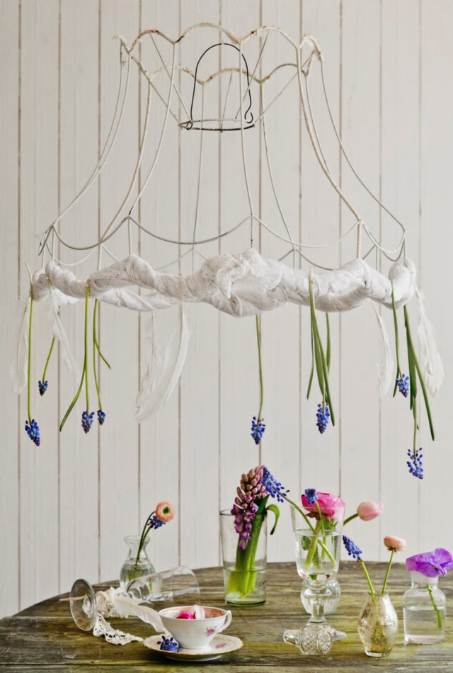 El buen tiempo de este fin de semana me ha animado a adelantarme a la primavera y traeros esta decoración de mesa primaveral con aire vintage. Jacintos, narcisos, peonías, tulipanes.....flores que ya están empezando a asomar en delicados tarros de cristal vintage, una mesa y sillas recicladas, vajilla antigua y una original lámpara, dan forma a este preciosos conjunto para celebrar que la primavera esta ya cerca.